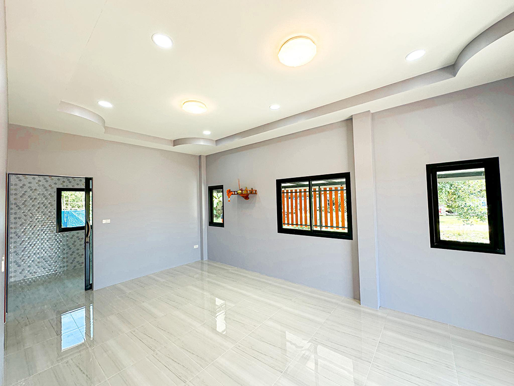 บ้านหลังนี้เป็นบ้านชั้นเดียวที่ออกแบบมาอย่างลงตัว ผสมผสานความเรียบหรูเข้ากับกลิ่นอายโมเดิร์น โดดเด่นด้วยโทนสีเทาสบายตา ตัดเส้นด้วยสีส้มเพิ่มความทันสมัย พร้อมโรงจอดรถในตัวที่ตอบโจทย์การใช้งานจริง เหมาะทั้งครอบครัวเริ่มต้น หรือผู้ที่ต้องการบ้านพักอาศัยที่ดูดีในงบประมาณที่คุ้มค่า
