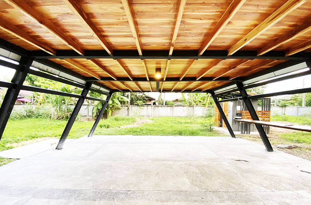 สำหรับบ้าานหลังนี้นั้นมีการออกแบบที่โดดเด่นสวยงามโครงสร้างเป็นเหล็กขนาดใหญ่ ตกแต่งด้วยไม้สักสวยงามลงตัวด้านหน้าตกแต่งด้วยขนาดใหญ่