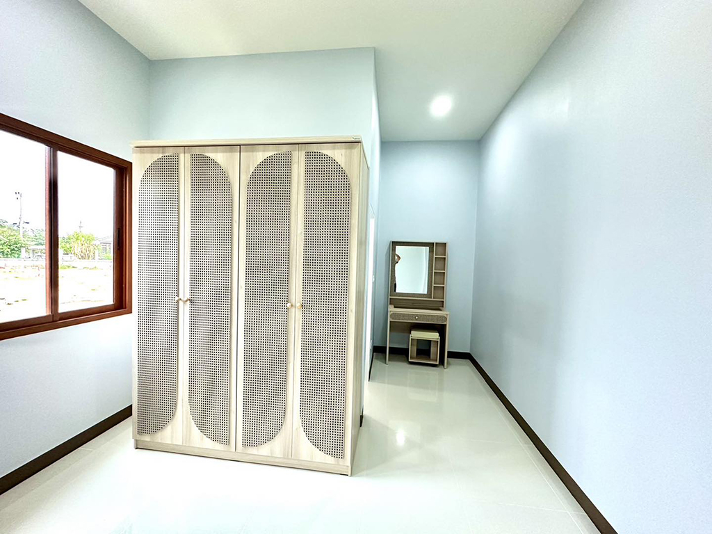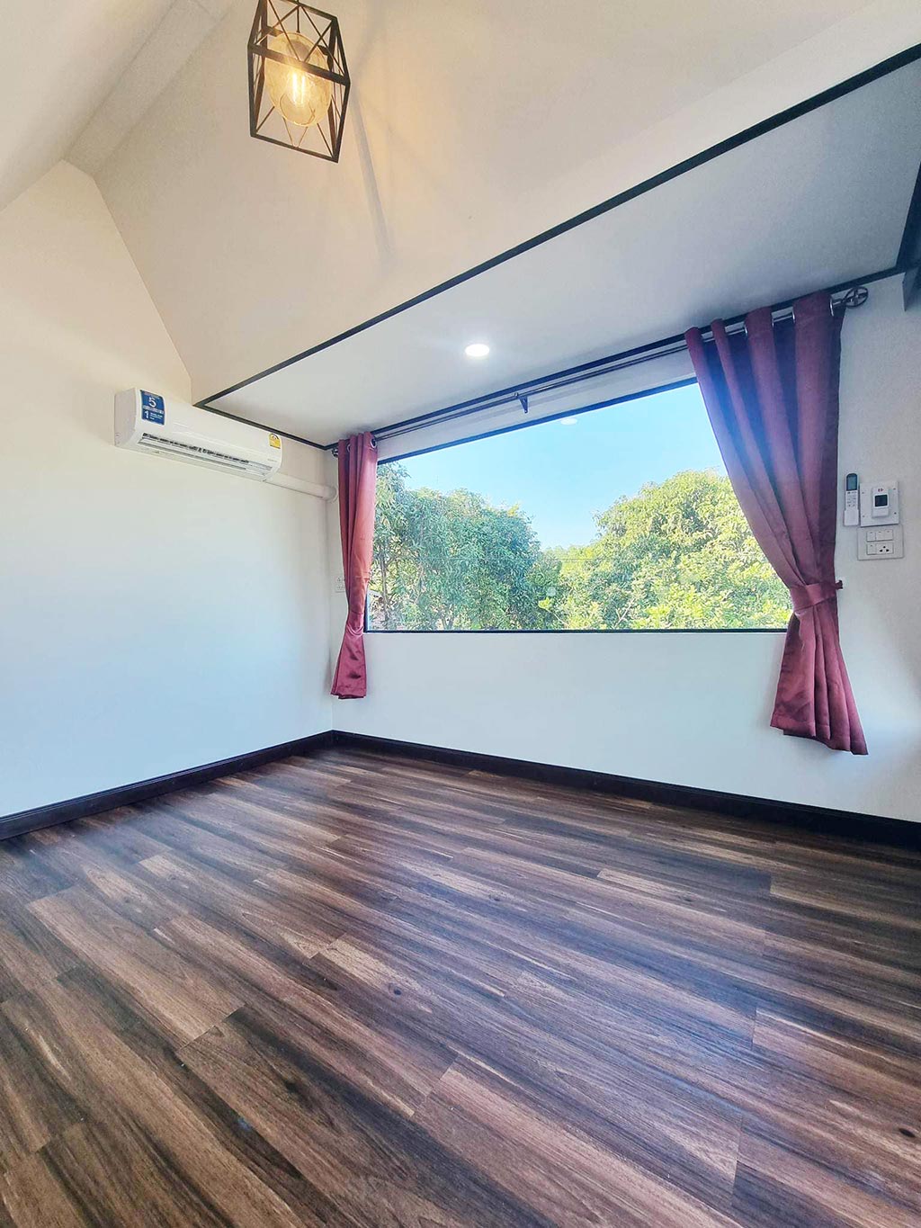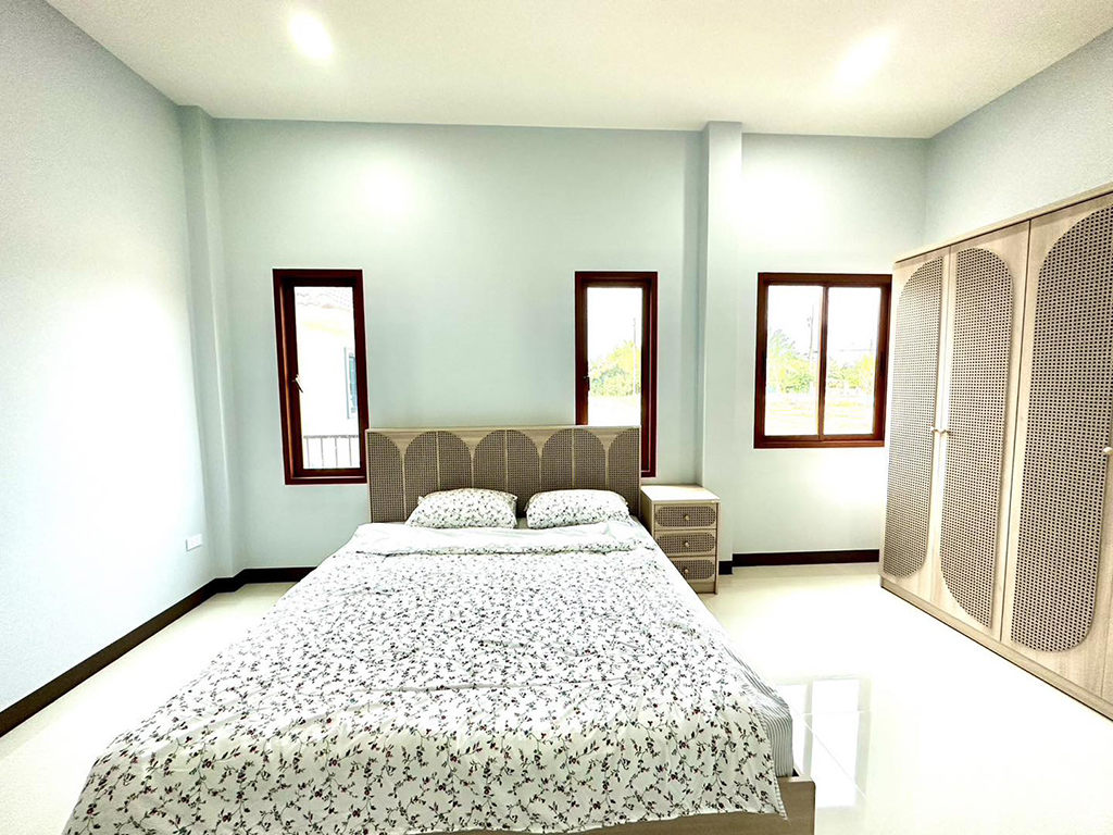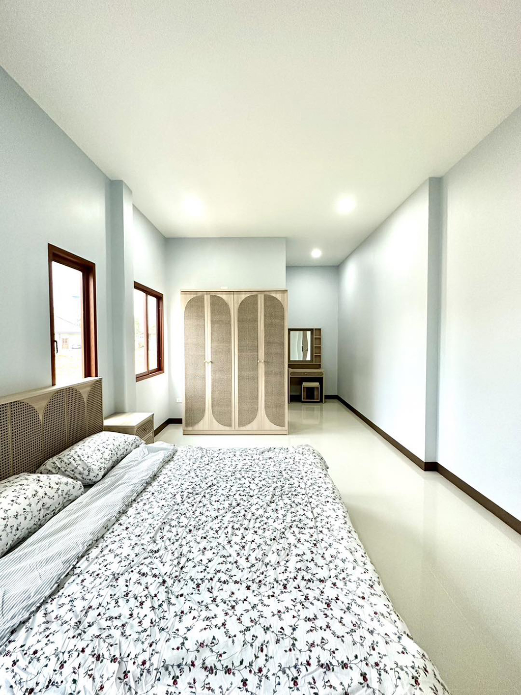 รูปแบบของห้องนอนออกแบบด้วยลายหินอ่อนลายเดียวกับบ้านนอก พร้อมหน้าต่างขนาดกว้างเพิ่มแสงสว่างเหมาะการพักผ่อนได้เป็นอย่างดี ผนังภายในห้องออกแบบด้วยโทนสีเหลืองอ่อน